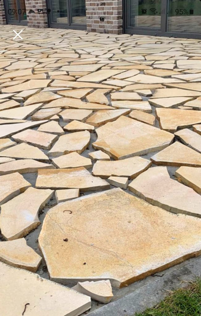 Durch das Verlegen eines Pflasters mit mehreren Steingrößen ergibt sich ein aufgelockerter Belag und eine hochwertige Ansicht.